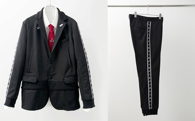 スーツ型ジャージージャケットは64,800円、パンツは38,880円、スニーカーは35,640円。シャツは30,240円、ネクタイは10,582円、靴下は2,700円で販売されている。山田孝之が主演の極めてシュールなPVが公開されているので、併せてどうぞ!