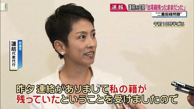 蓮舫氏「台湾籍、離脱完了しました」