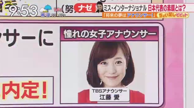 T164・B75・W60・H83のスレンダーボディーの山形さんの憧れは、TBS・江藤愛アナだと国分が伝え「ひるおび!内定」と続けた。江藤アナがアシスタントMCを務める番組に出演すると太鼓判を押した。