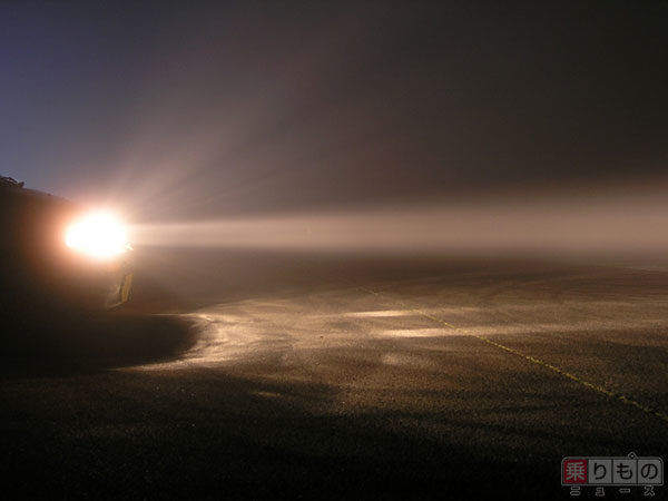 写真「ロービーム」は前方40m、「ハイビーム」は前方100m先を照らせるものと定められている