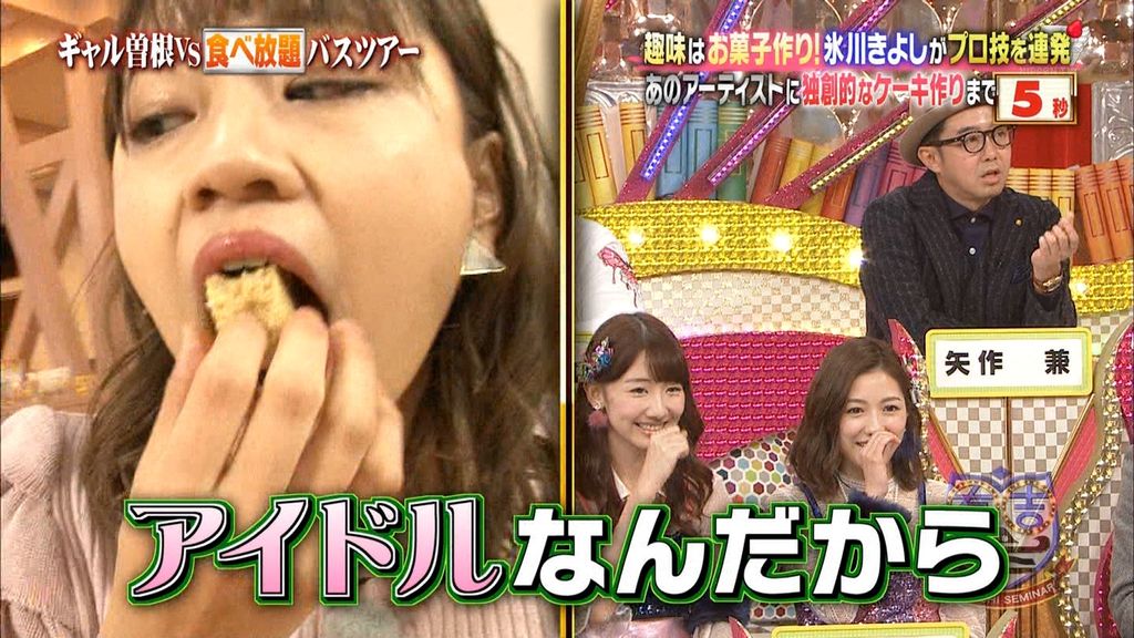 いきなり30個を注文しスタジオを驚愕させた島田は、アイドルらしからぬ食べっぷりで10分で20個をたいらげ、「なんか曽根さん、遅いっすね」とギャル曽根を挑発。