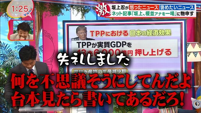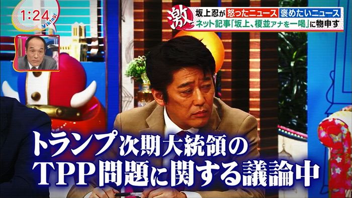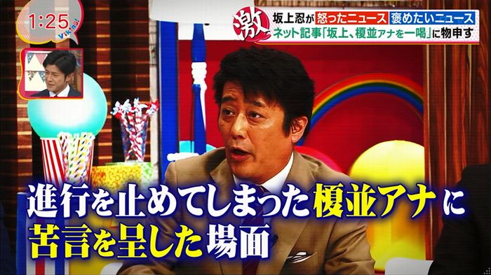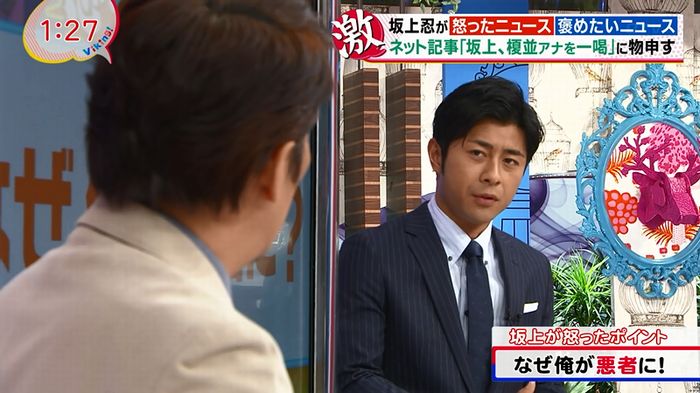 それを受け、坂上はこの日「怒っている」とこの話題を取り上げ、記事内容がミスをした榎並アナに同情的だったと指摘した。そして「とちったのはこっち(榎並アナ)でしょ」。すると榎並アナが「私が『榎並メモ』というものを見落としてしまって…」と、小さめの声で話すと、坂上は再び「またそうして声小さくしていうと、俺が恫喝したとかなってんじゃん。それ、俺を落として入れている演技じゃん」と声量が一段と大きくなった。