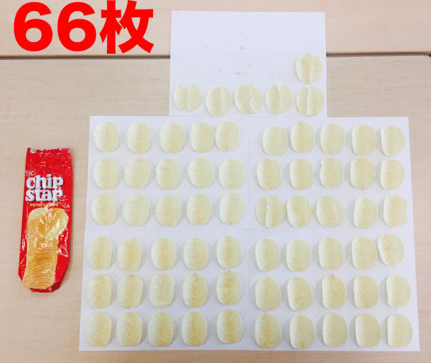 味に関しては、それぞれの意見がありますが、少なくともクリスプが、チップスターに比べて、圧倒的に少ない事実はありませんでした。