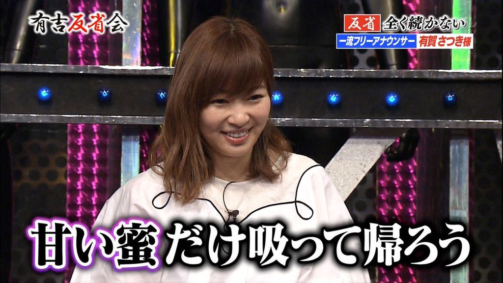 有吉は指原に「AKB48は何年目」と問うと、「8年目になりますね」と答え、さらに有賀から「卒業は?」とツッコまれ、「全然まだまだ、甘い蜜だけ吸って帰ろうと思ってます」と大胆発言。「ガンガン吸ってポイッ!」と悪い顔で語っていた。ソース元