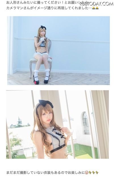 プロコスプレーヤーのえなこが、ブログで可愛らしいながらセクシーなコスプレを披露。冬コミ、こと冬のコミックマーケットで発売する新刊写真集のオフショットと思われる。