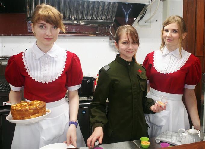ロシアの別荘をイメージした店内で、手作りのロシア料理や紅茶が楽しめる。店長の「ナスチャん」さんは「ロシアのことを知ってもらって、仲良くなりたい」と話している。