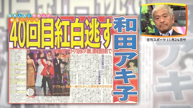 番組では和田が女性歌手としては歴代最多の通算39回出場を重ねた紅白に落選したことを取り上げ、松本は「(NHKは)ネットの意見を見すぎている。ネットの声がそのまま世間の意見というのは違う。マンネリを貫く。ねじ伏せるでいい。スポンサー関係ないわけやし」と独特の感想を漏らした。