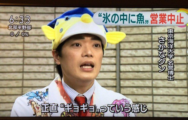 28日朝放送の「おはよう日本」(NHK)で、魚類学者のさかなクンが渦中の魚の冷凍展示を痛烈に批判した。
