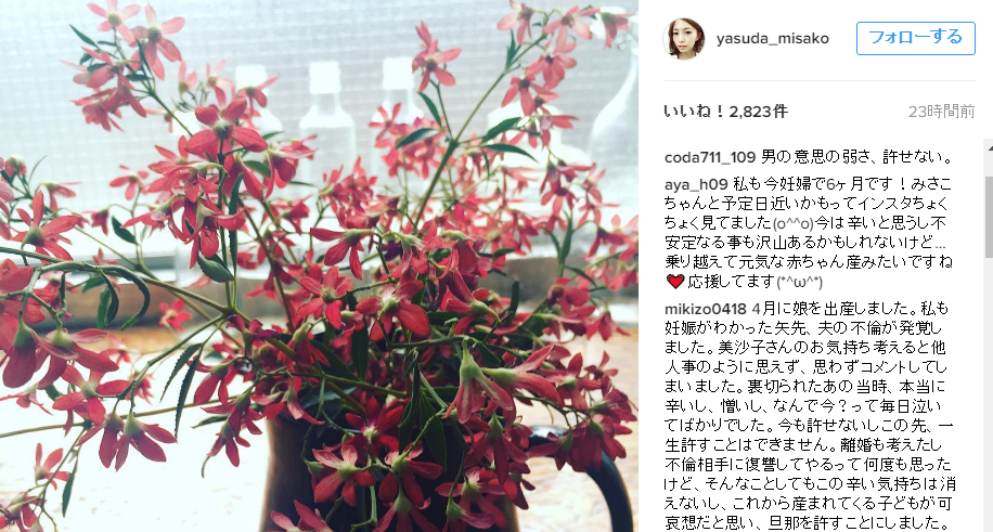 産経新聞の取材に対し、安田さんは事務所を通じて「私たちのことでお騒がせして申し訳ありません。夫から事情を聴きこっぴどくお灸をすえた。反省しているようなので今回ばかりは許し、お腹の赤ちゃんのためもう一度、2人でやり直したい」とコメント。