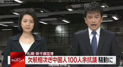 新千歳空港 中国人100人が抗議し騒動