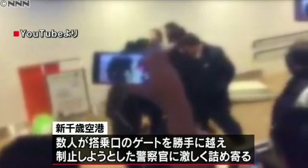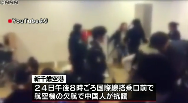 新千歳空港などによると24日午後8時頃、新千歳空港国際線の搭乗口前で乗る予定だった便が欠航したことを受け、中国人100人あまりが抗議する騒ぎがあったという。このうち数人が搭乗口のゲートを勝手に越えた上、制止しようと駆けつけた警察官に激しく詰め寄った。