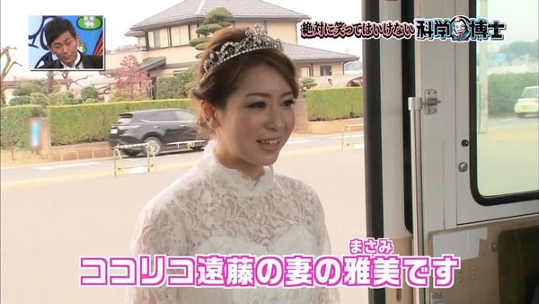ダウンタウン、ココリコ、月亭方正が出演する大みそか恒例の「絶対に笑ってはいけない」シリーズ、「絶対に笑ってはいけない科学博士24時!」(日本テレビ系)が31日に放送を開始している。冒頭から、番組の恒例になっているココリコ遠藤章造の家族が登場した。さらに、妻の雅美さんまで顔出しで登場して笑いを誘った。
