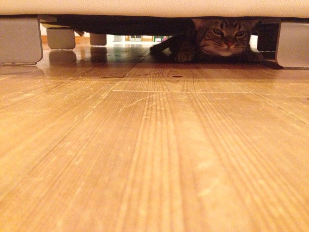 いなくなったと思ったらソファーの下から出てきたンゴ