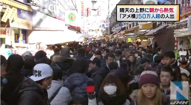 【すごE】上野「アメ横」に50万人超wwwwwwwwww
