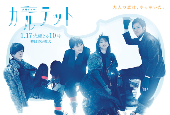 この作品は「Mother」「最高の離婚」など数々のヒット・ドラマを生み出してきた脚本家・坂元裕二氏(49)の完全オリジナル作品。冬の軽井沢を舞台に弦楽四重奏「カルテット」を組む男女4人(松、満島ひかり、高橋一生、松田龍平)の、ほろ苦くて甘い共同生活を描くストーリーだ。(数字は関東地区、ビデオリサーチ調べ)。