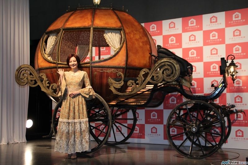 このCMでベッキーは、シンデレラとしてかぼちゃの馬車に乗り、まだ見ぬ新天地を目指して旅立つ女性を熱演。発表会では、CMで披露しているドレス姿で登場し、「中世の女性。これから頑張っていくんだという女性のドレスです」と説明した。