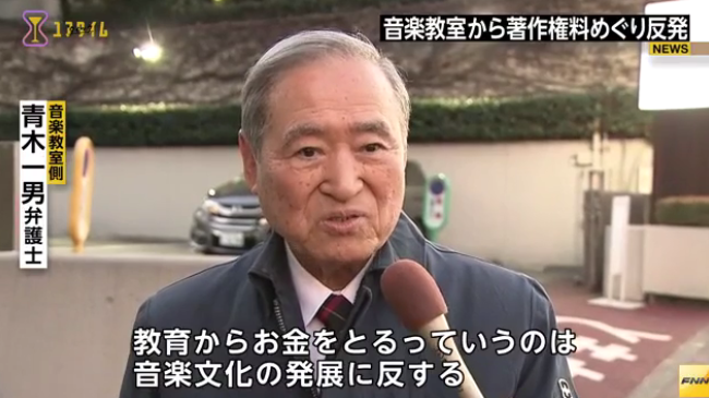 音楽教室側の青木一男弁護士は、「教育からお金を取るっていうのは、音楽文化の発展に反する。法廷闘争も当然視野に入っている」と語った。