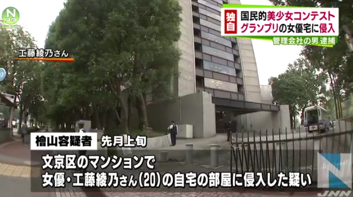 男逮捕 国民的美少女コンテストグランプリ女優宅に侵入容疑
