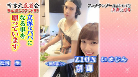 アレクサンダーは番組終了間際に「夏にパパになる」と告白。川崎もスタジオに姿を現し、司会の有吉弘行(42)から「(妊娠)何カ月?」と問われ「今5カ月」と幸せたっぷりの表情で答えた。