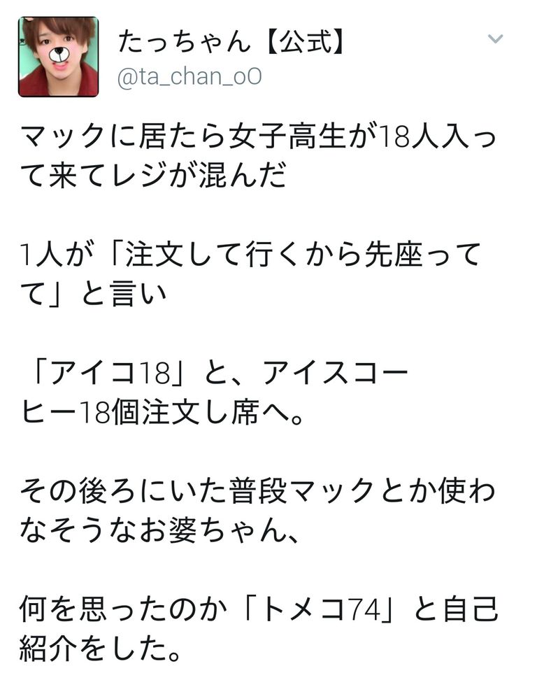 人気ツイッター民「マックでJK18人がアイスコーヒー18個頼んだ結果wwwwww」