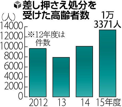 介護保険料を滞納し、市区町村から資産の差し押さえ処分を受けた65歳以上の高齢者が、2015年度に1万3371人で過去最多となったことが、厚生労働省の調査で分かった。