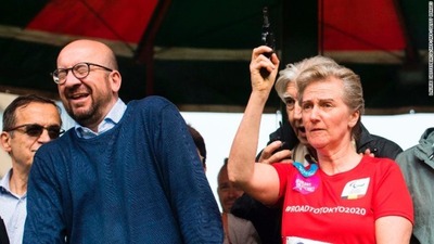 ミシェル首相は28日、首都ブリュッセルで開催された20キロマラソンの応援に訪れた。