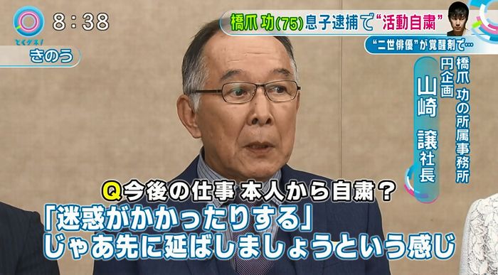 フジテレビ系「とくダネ!」(月~金曜、前8時)の小倉智昭キャスターが5日放送回で、覚せい剤取締法違反の疑いで逮捕された俳優の橋爪遼容疑者の事件について、遼容疑者の父で俳優の橋爪功が活動自粛を視野に入れていることについて、意見を述べた。