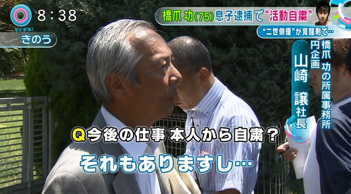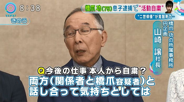 遼容疑者についてのVTRが放送された後、苦い表情で「30歳にもなって、覚せい剤で捕まった息子のために、父親が自粛するなんてことがあっちゃいけないと思うよ」とコメントした。