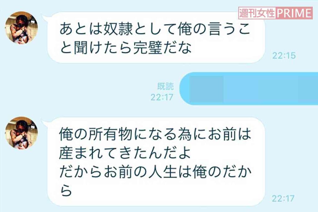 ・「かなりのS気質で《俺の所有物になる為にお前は産まれてきたんだよ》など高圧的なメッセージが多かった。局部の写真が送られてきたことは1度や2度ではありません」