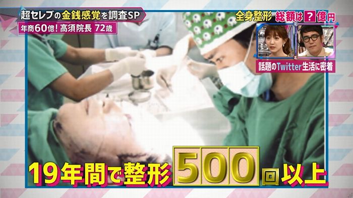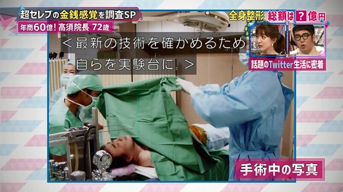 また、これまでの整形でかかった総額費用は「10億円くらい」と明かし、この事実にスタジオは驚愕していた。