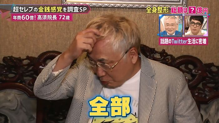 高須院長は整形箇所について「全部」と髪や歯、そして顔すらも「一皮、全部剥いた」と全身整形していることを告白。