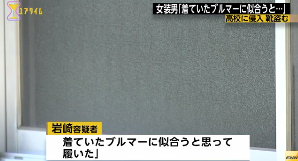 ブルマーの体操服姿で高校に侵入し、女子生徒の靴を盗んだ47歳の男が逮捕された。