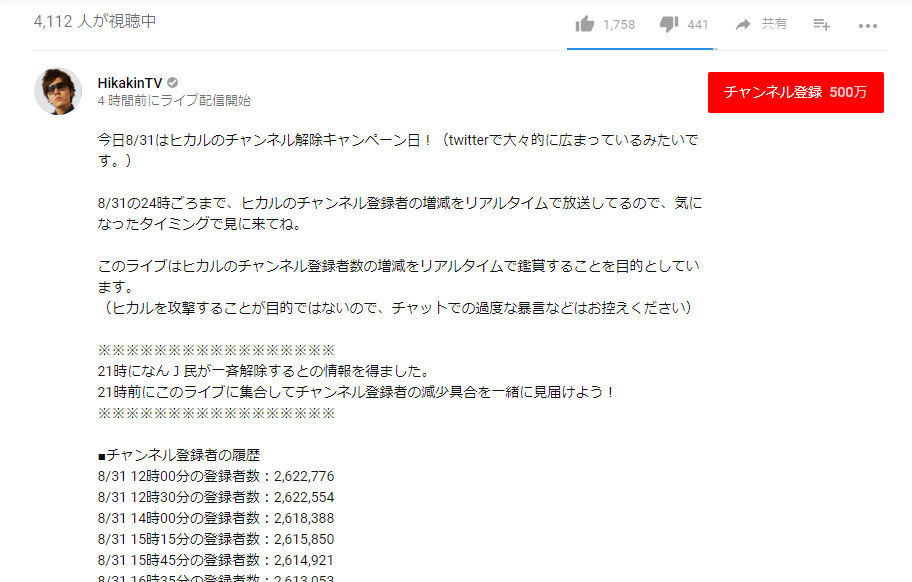 YouTubeがバグってヒカキンがヒカルのチャンネル解除祝ってるみたいになってて草