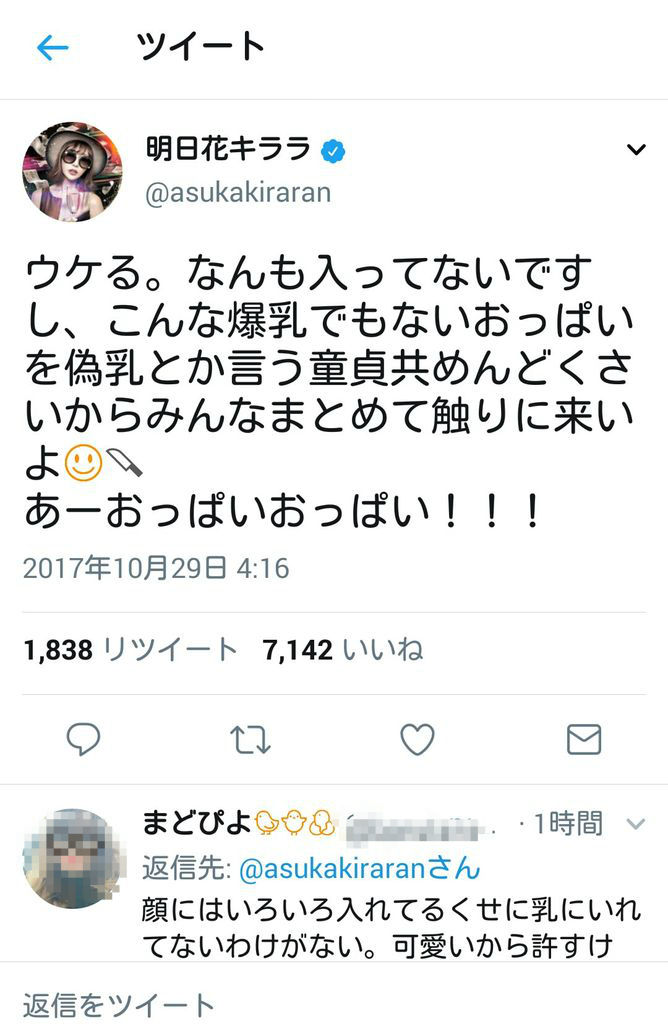 ウケる。なんも入ってないですし、こんな爆乳でもないおっぱいを偽乳とか言う童貞共めんどくさいからみんなまとめて触りに来いよ☺️🔪