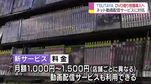 人気映画の中にはネット配信されていない作品も多いため、TSUTAYAを展開する「カルチュア・コンビニエンス・クラブ」は、こうした人気作品も含めたDVDの借り放題サービスを新たに導入することで、急速に普及する動画配信サービスに対抗する狙いがあります。