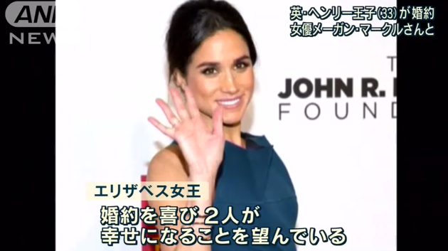 イギリス王室が、ヘンリー王子(33)とアメリカ人女優、メーガン・マークルさん(36)が今月初めに婚約したことを発表した。