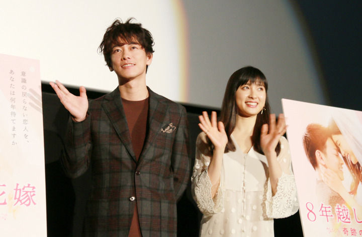 女優の土屋太鳳さんと俳優の佐藤健さんが21日、名古屋市内で行われたダブル主演映画「8年越しの花嫁 奇跡の実話」(瀬々敬久監督、12月16日公開)の試写会で行われた舞台あいさつに登場した。