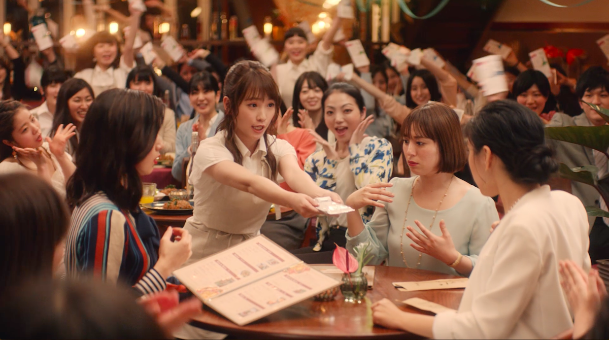 川栄は新テレビCMで居酒屋店員に扮し、顔がベタついている来店客からの注文に「顔にシート!」と新商品を提供。