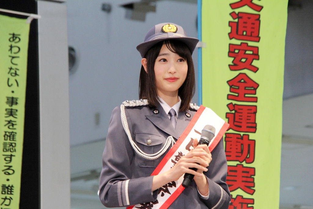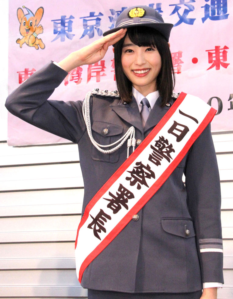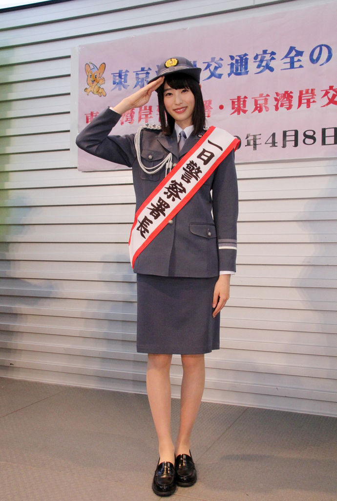 「たくさんの人々が行き交う、お台場を管轄する東京湾岸署の一日警察署長をさせていただくことはすごく光栄ですし、警察官の方々の制服はなかなか着る機会ないですし、憧れの制服なので着ることができてすごくうれしいです」と笑顔を見せた。