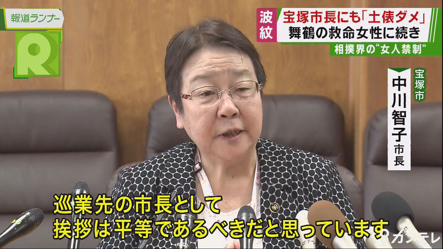 女人禁制に波紋も 宝塚市の女性市長「土俵の上であいさつできず悔しい」