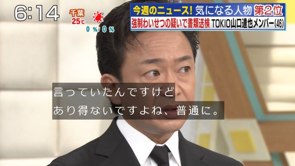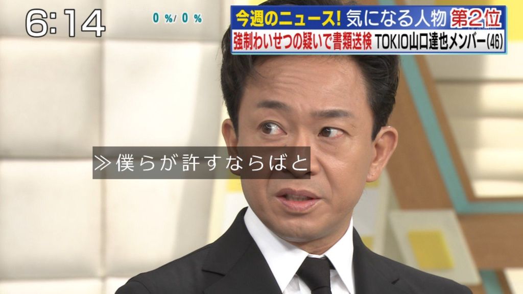 また、山口は会見で「まだTOKIOに席があるなら戻りたい」と話していたことについてTOKIOのリーダーとして、長い付き合いの友人として「ありえないでしょうね」と断罪。