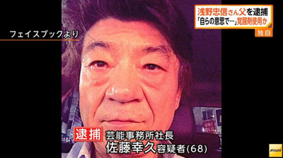 俳優の浅野忠信さん(44)の父親で、元芸能事務所社長の佐藤幸久容疑者(68)(東京都渋谷区)が6月30日、覚醒剤取締法違反(使用)容疑で再び、警視庁に逮捕されていたことがわかった。佐藤容疑者は昨年11月に同容疑で逮捕され、今年3月に東京地裁で懲役2年、執行猶予5年の有罪判決を受けたばかりだった。