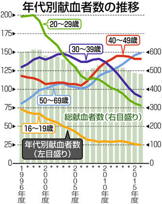 手術などで必要となる輸血用の血液を支えるのが献血。だが、若い世代の献血者は減り続け、三十代以下では二十年前と比べて半分に。このペースで減り続けると、需要に追いつかなくなる恐れがある。 献血への協力者を増やす必要があり、日本赤十字社(日赤)は大学生のボランティアらと協力し、若い世代を中心に献血への協力を呼び掛けている。 ソース http://www.tokyo-np.co.jp/article/living/life/201808/CK2018082802000199.html