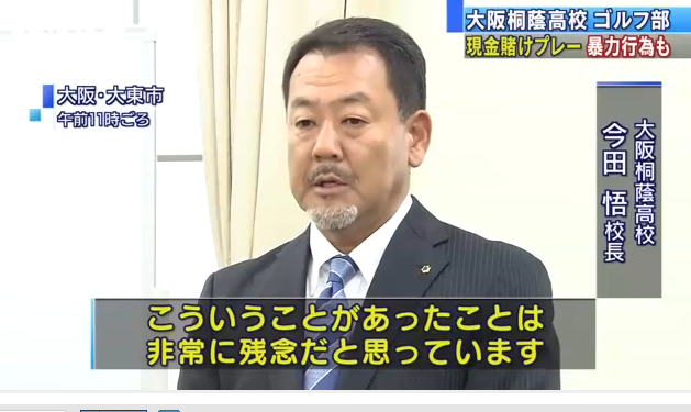 今田悟校長によると、ゴルフ部の複数の部員が昨年7月~今年3月、複数回にわたり数百円ずつを賭けてプレーをした。