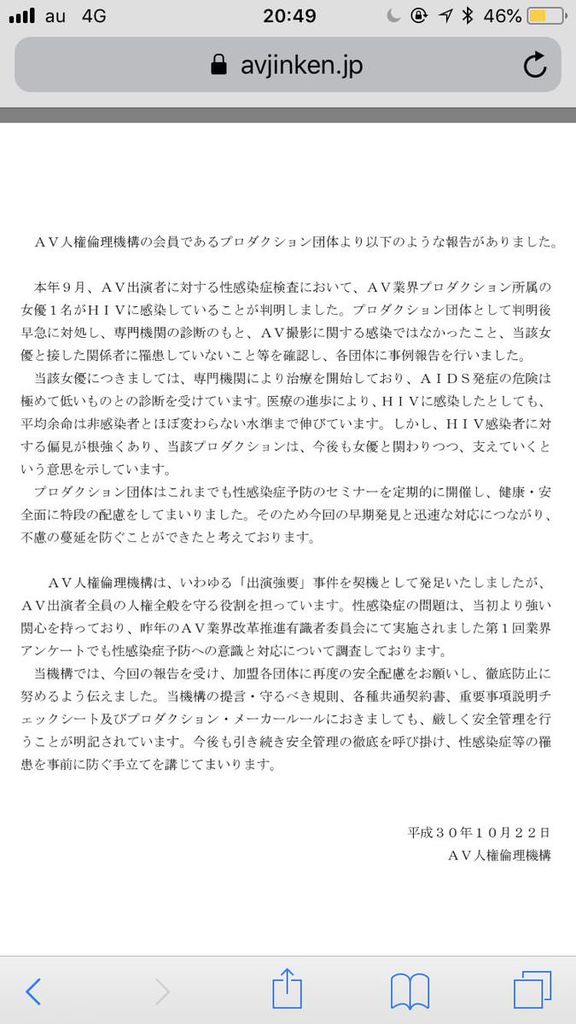 出演強要問題で揺れるAV業界で、AV女優の「HIV感染」が公表されました。