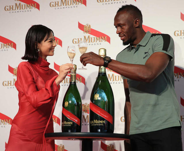 歌手でモデルの西内まりや(24)が12日、都内で行われた「シャンパーニュ メゾン マム」プレスイベントに、陸上男子100メートル、200メートル世界記録保持者ウサイン・ボルト氏(32)とともに出席。西内は3月いっぱいで所属事務所を退所し、フリーとなったことを公表後、初めての芸能イベントへの出演となった。