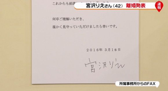 一方で、逆の意味で注目を集めてしまった芸能人も少なくない。宮沢りえは、16年3月に離婚を発表した際、ファックスの直筆署名が独特で