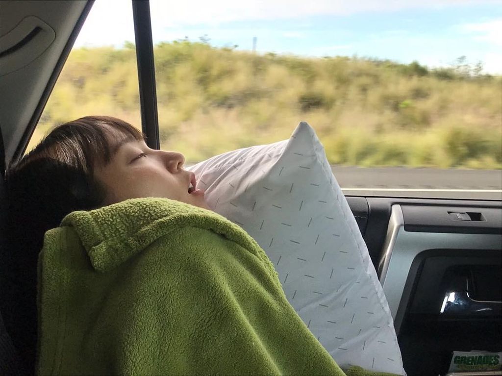 「明けましておめでとうございます。昨年も応援の言葉、作品への感想、おはようやおやすみ、(ハートマーク)や(顔文字)、沢山の愛情たっぷりのメッセージありがとうございました。」と新年のあいさつと感謝がつづられた今回の投稿では、車中で爆睡する吉岡の姿が写し出されている。