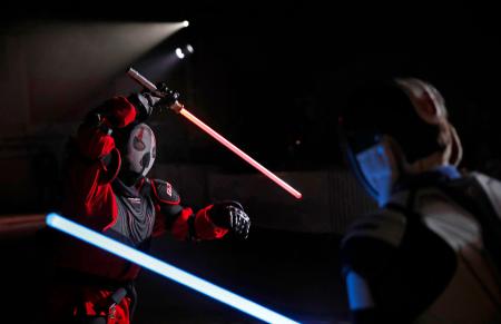 フランス連盟が人気SF映画「スター・ウォーズ」に登場する武器「ライトセーバー」(光剣)を使った