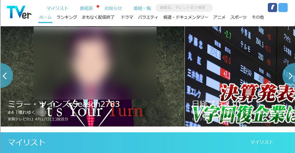 TVerのアプリおよびWEBサイトにおきまして、